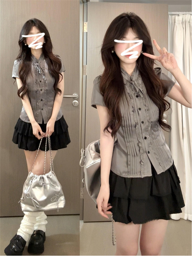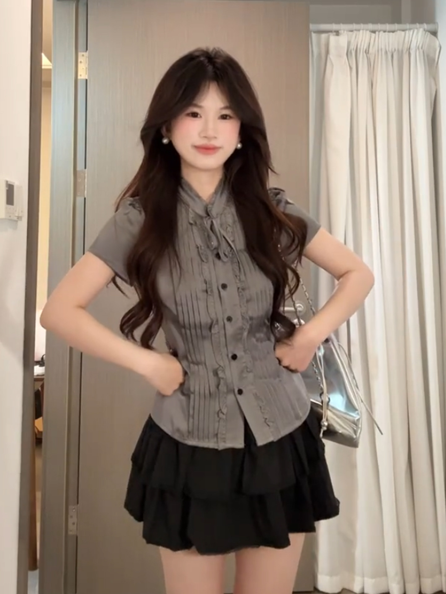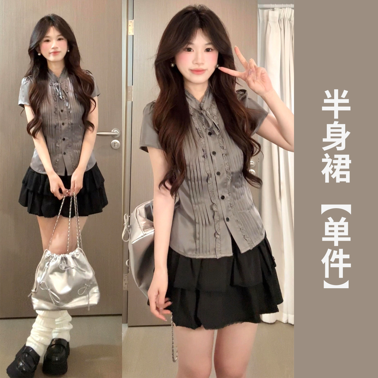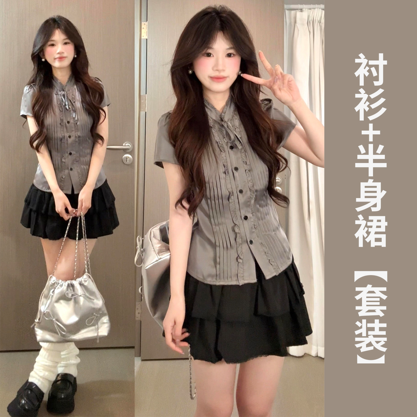 独特漂亮法式衬衫黑色半身连衣裙子套装女夏季2026新款穿搭一整套