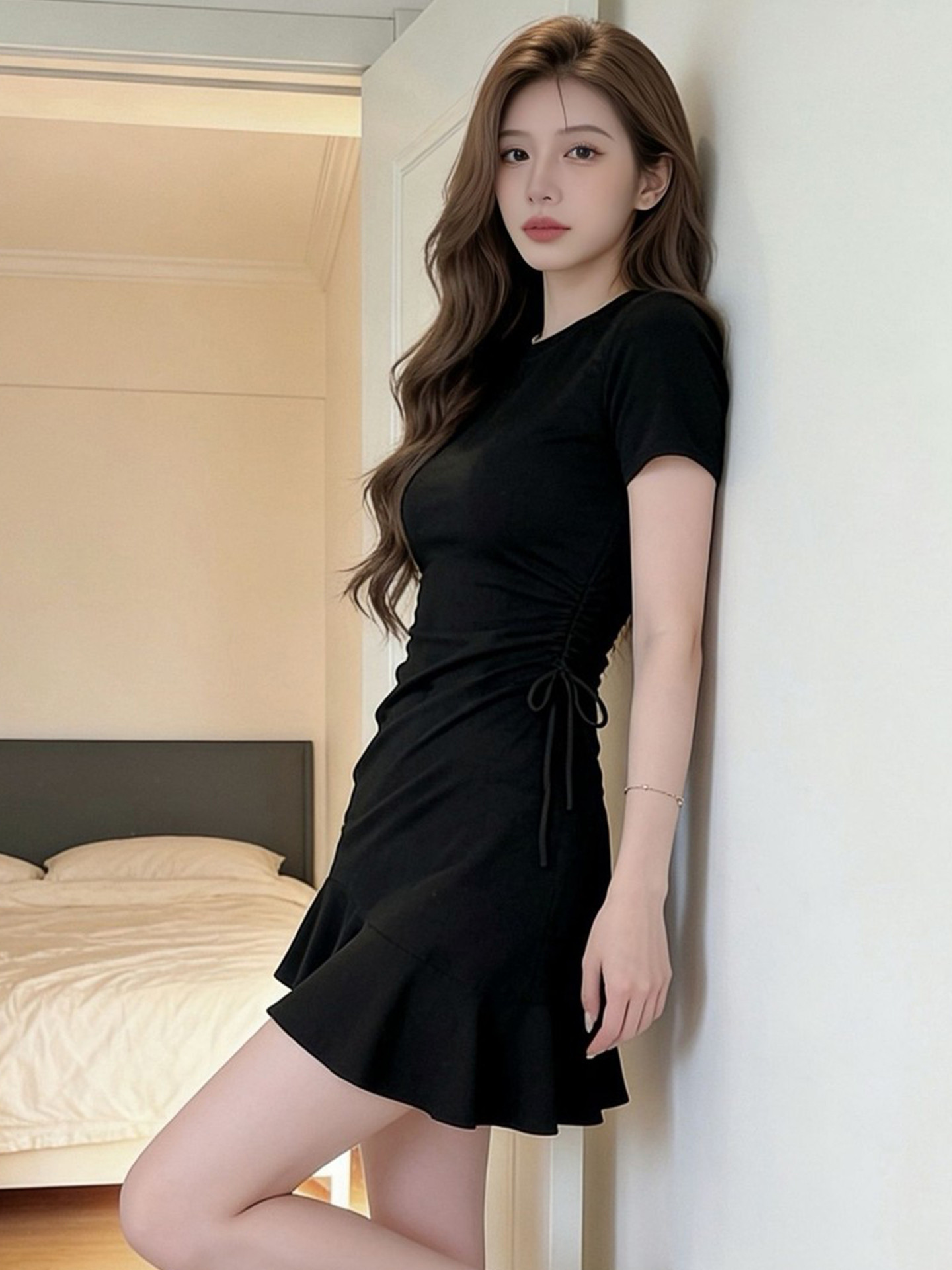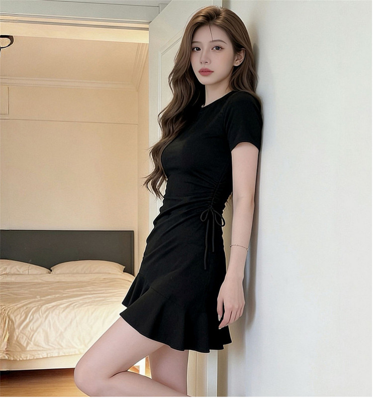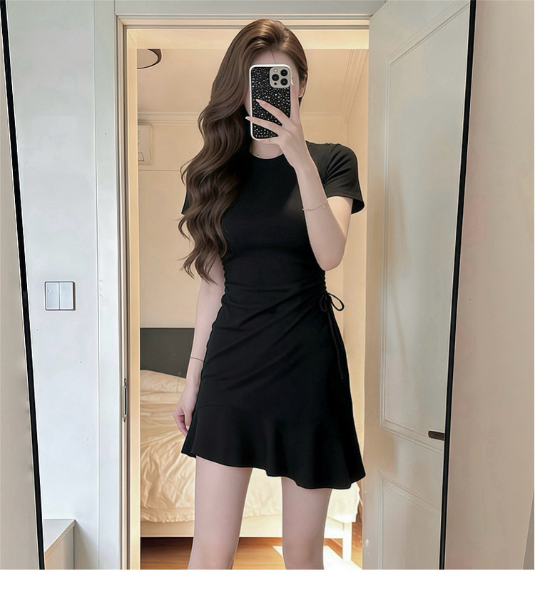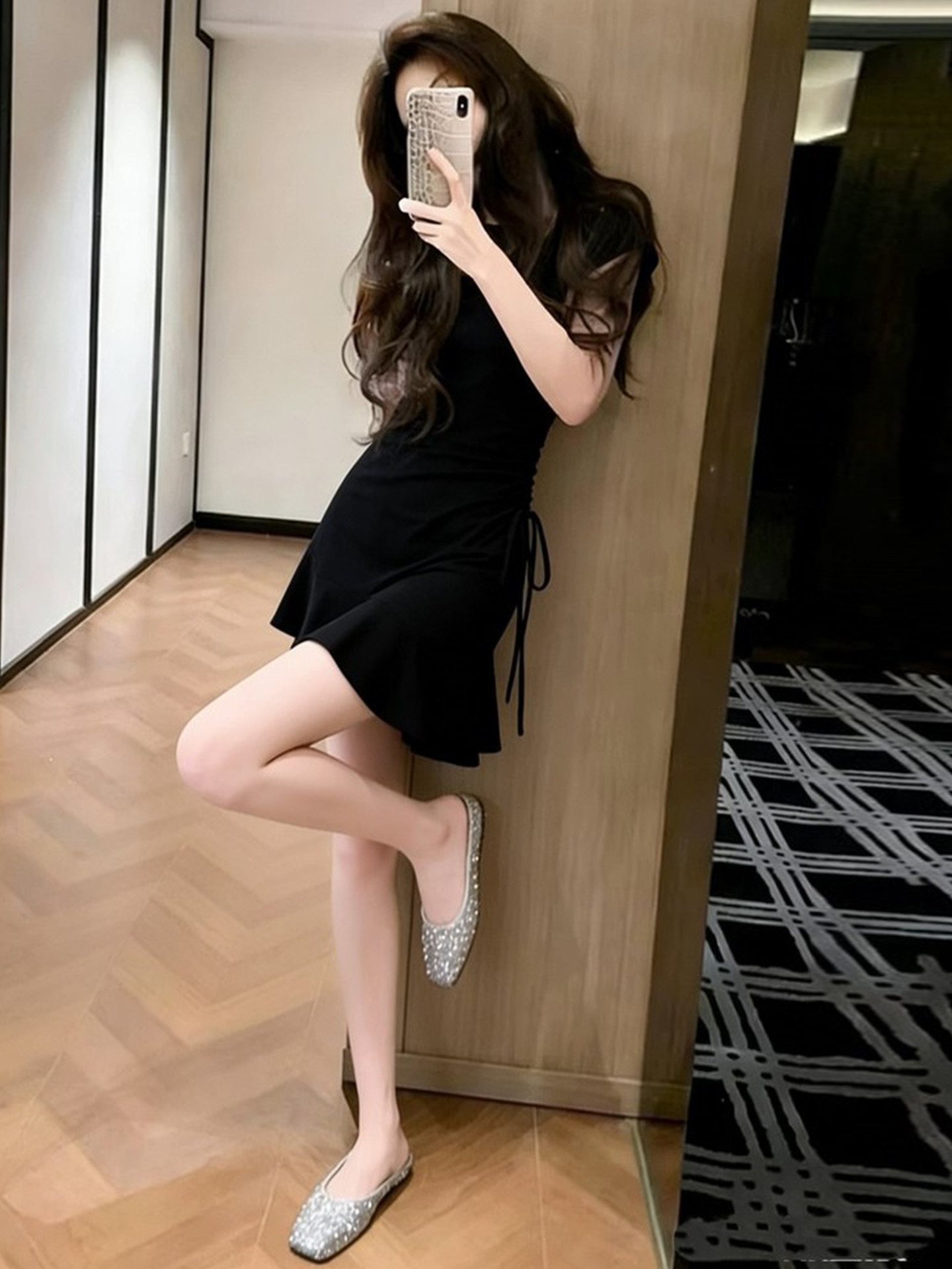 黑色连衣裙小个子女夏季2026新款初夏巨好看绝美独特漂亮掐腰短裙