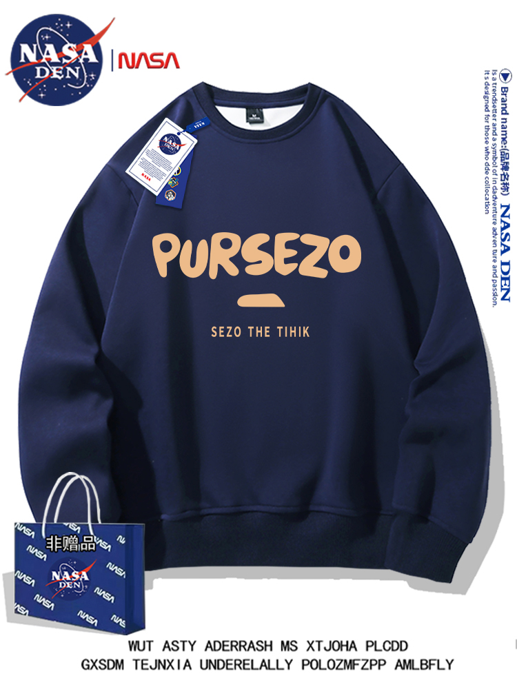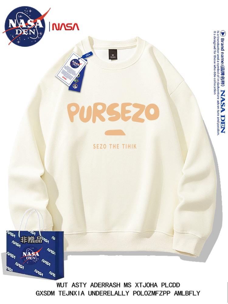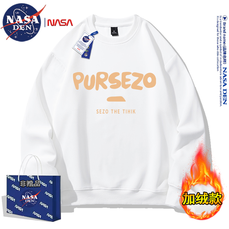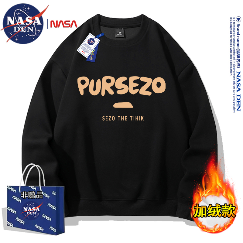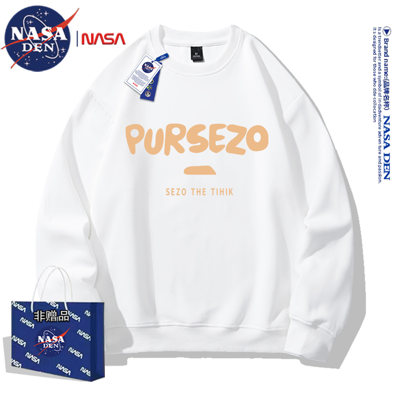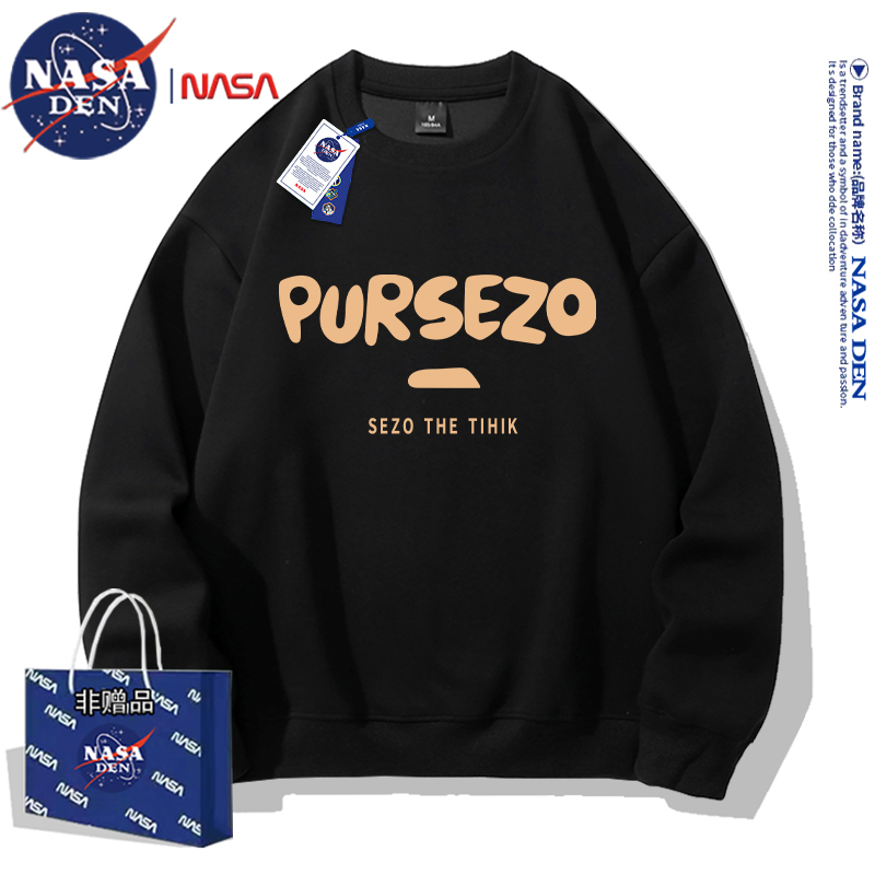 NASA联名重磅美式长袖卫衣男女款春秋季简约印花保暖内搭宽松外套