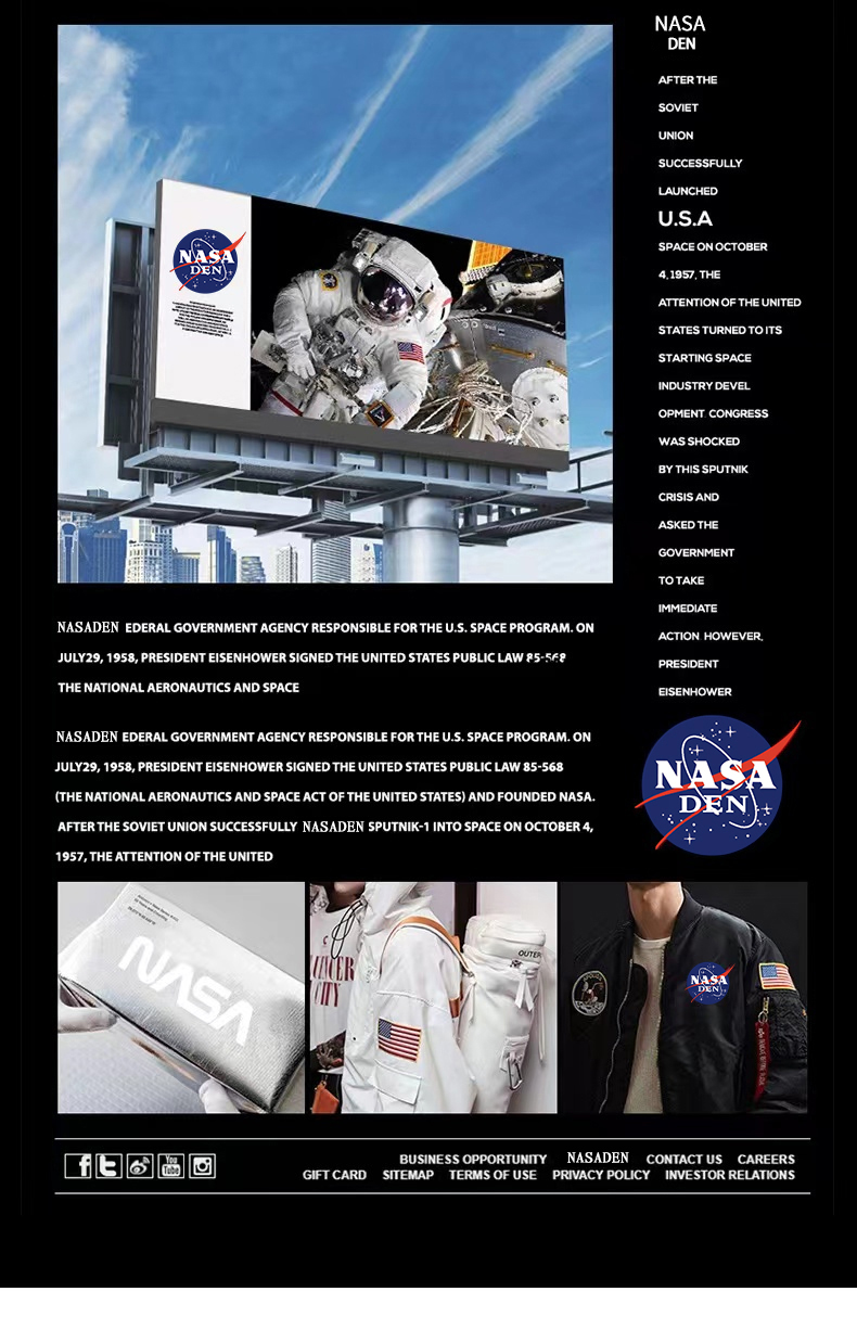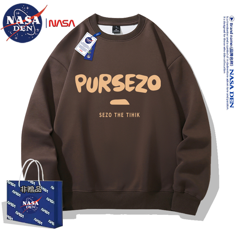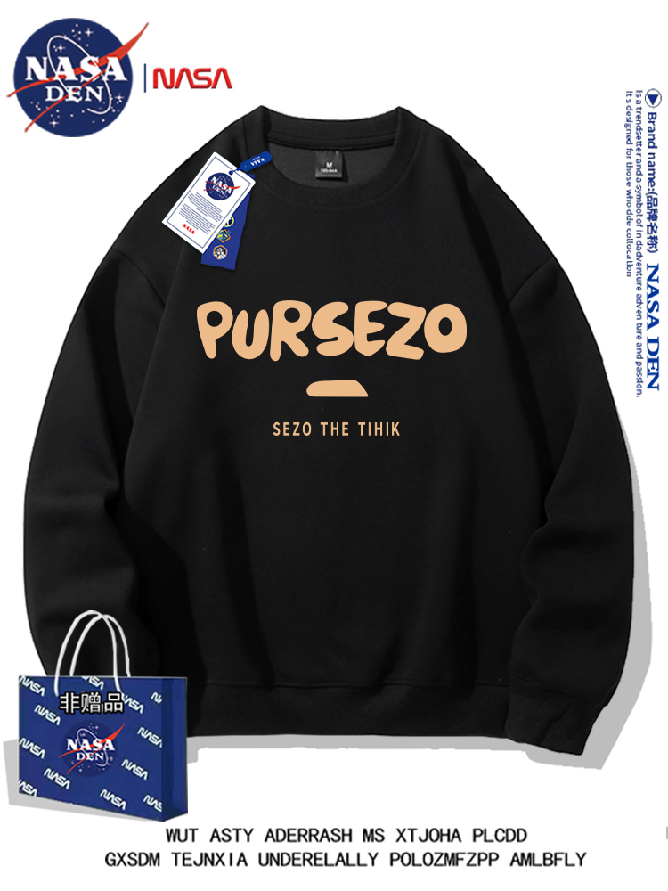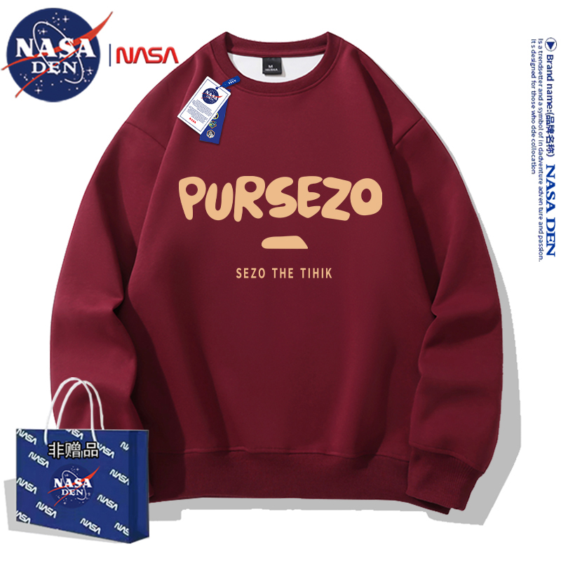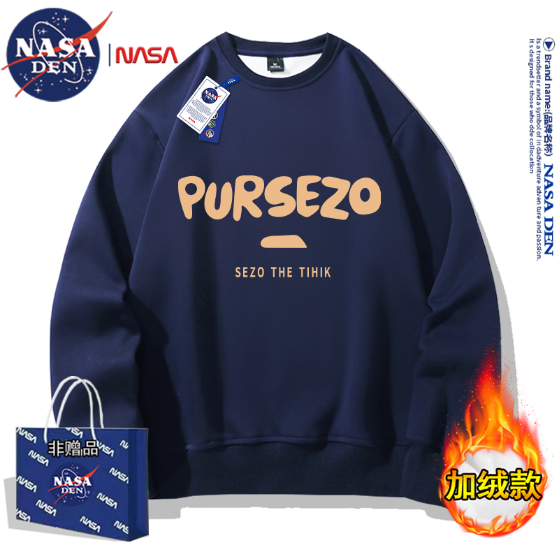 NASA联名重磅美式长袖卫衣男女款春秋季简约印花保暖内搭宽松外套
