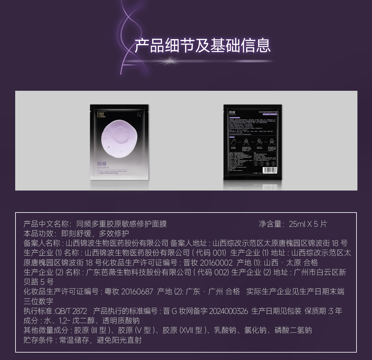 同频多重胶原修护舒缓贴片面膜