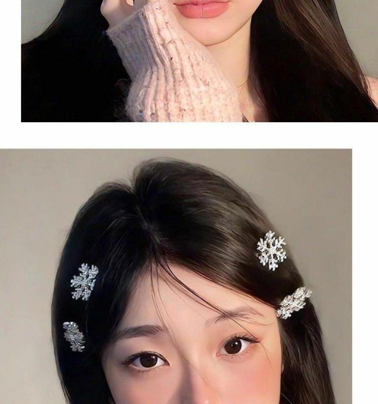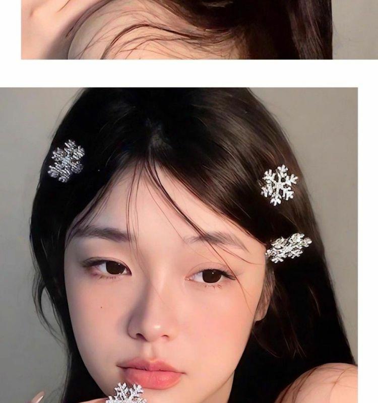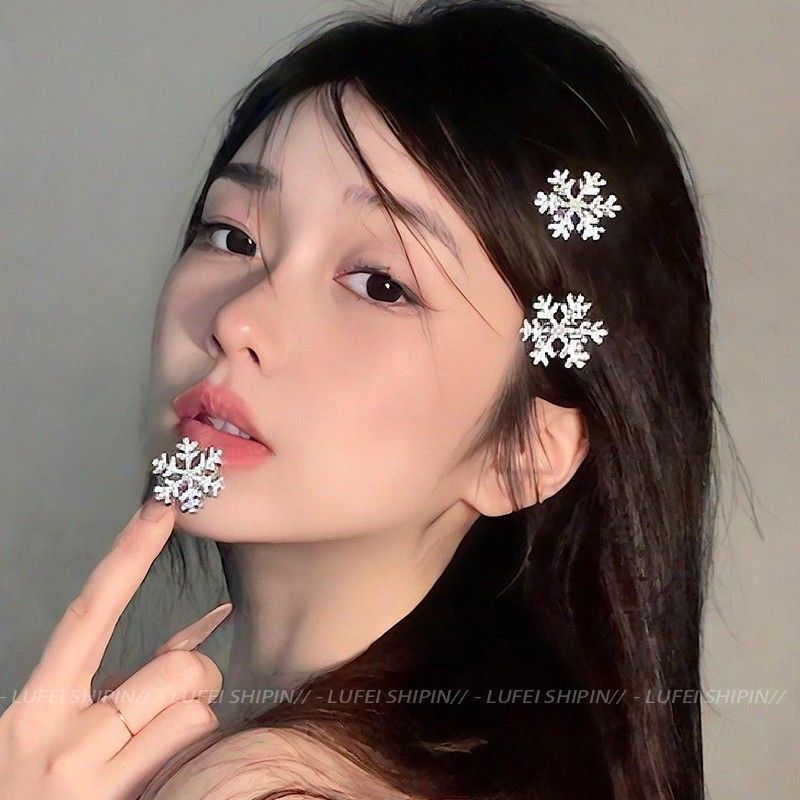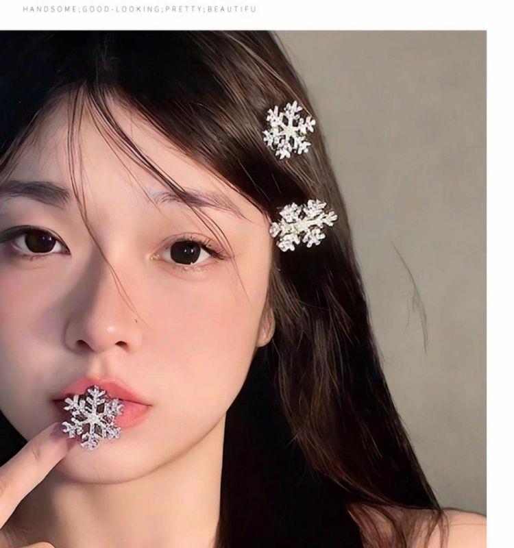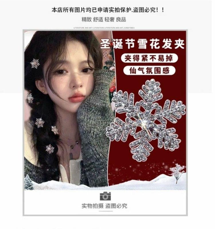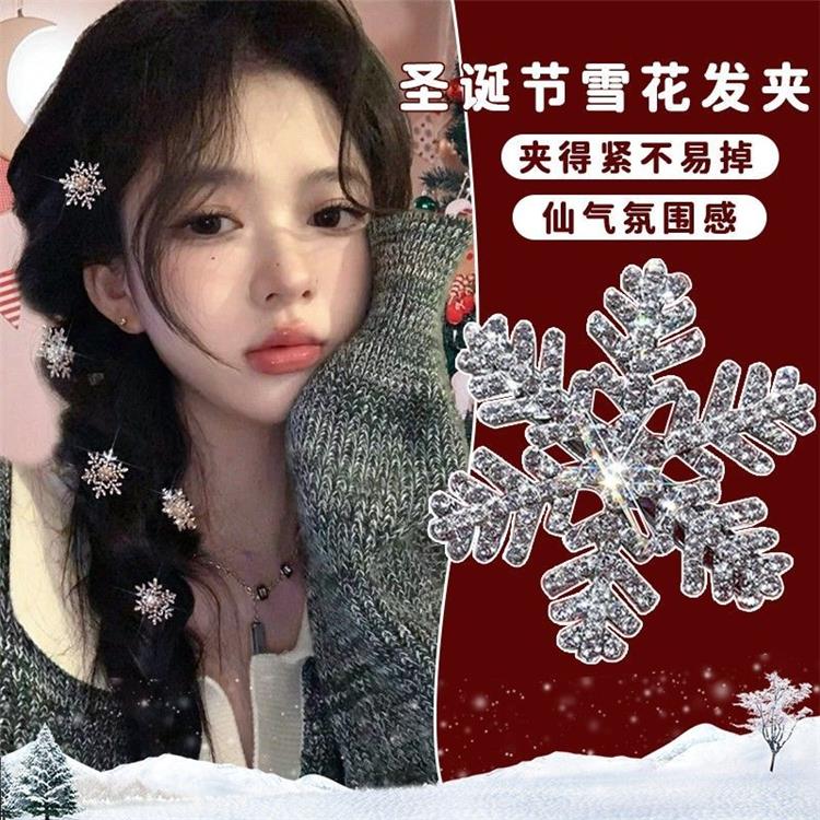 圣诞节可爱毛绒雪花发夹女侧边刘海夹子轻奢发卡子秋冬高级感头饰