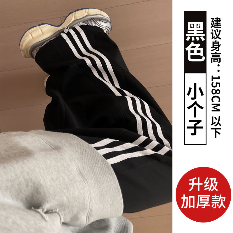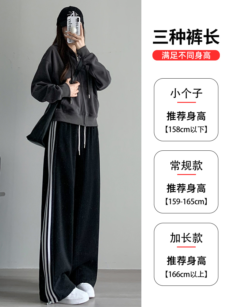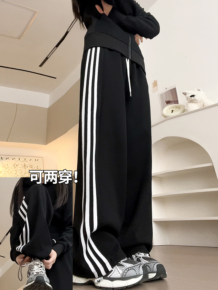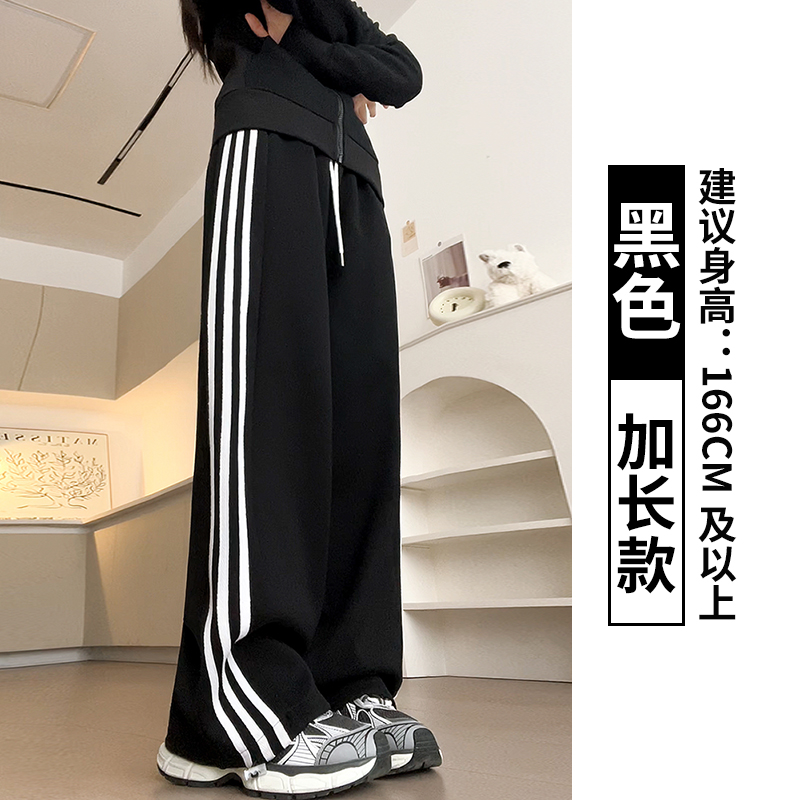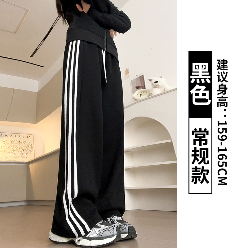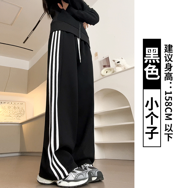 黑色条纹运动裤女秋季2025新款高腰阔腿裤小个子休闲宽松直筒卫裤