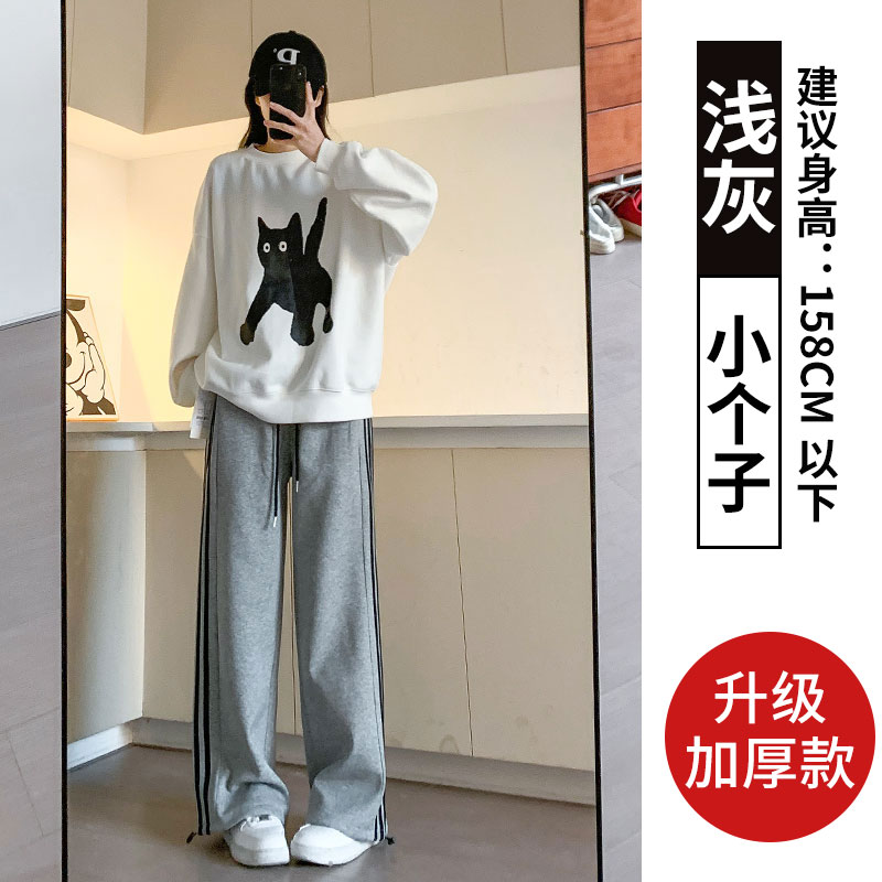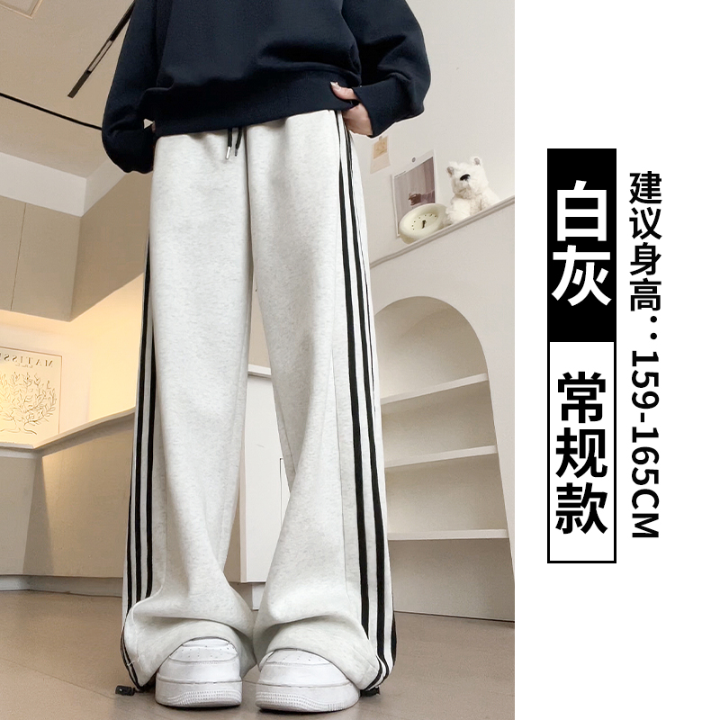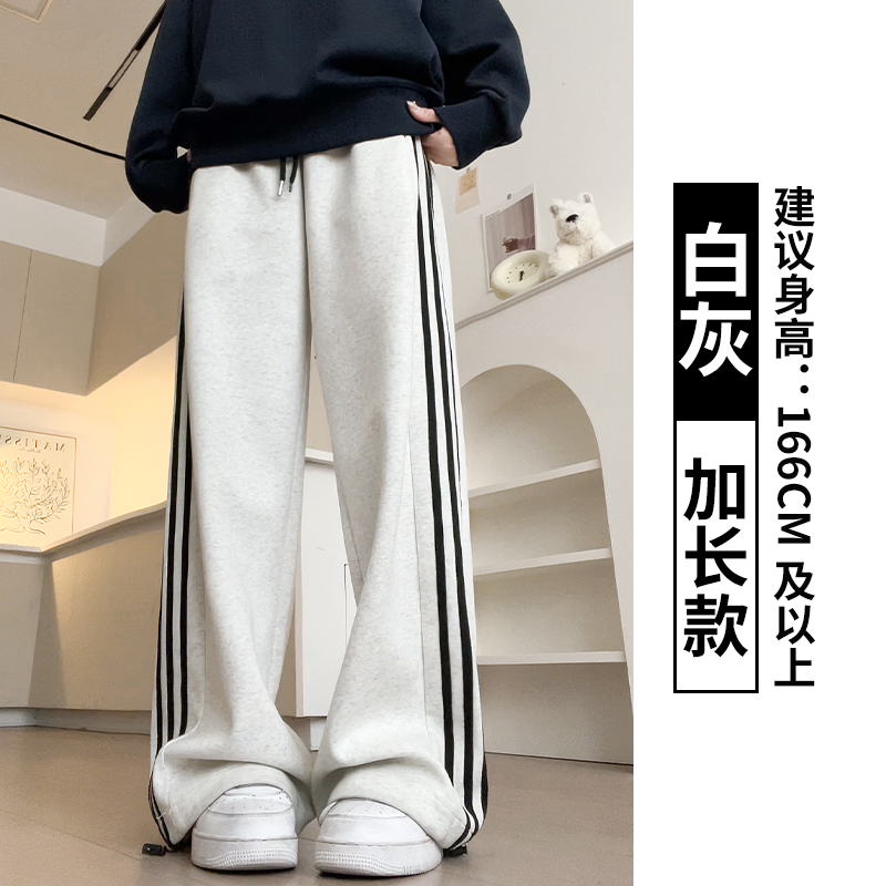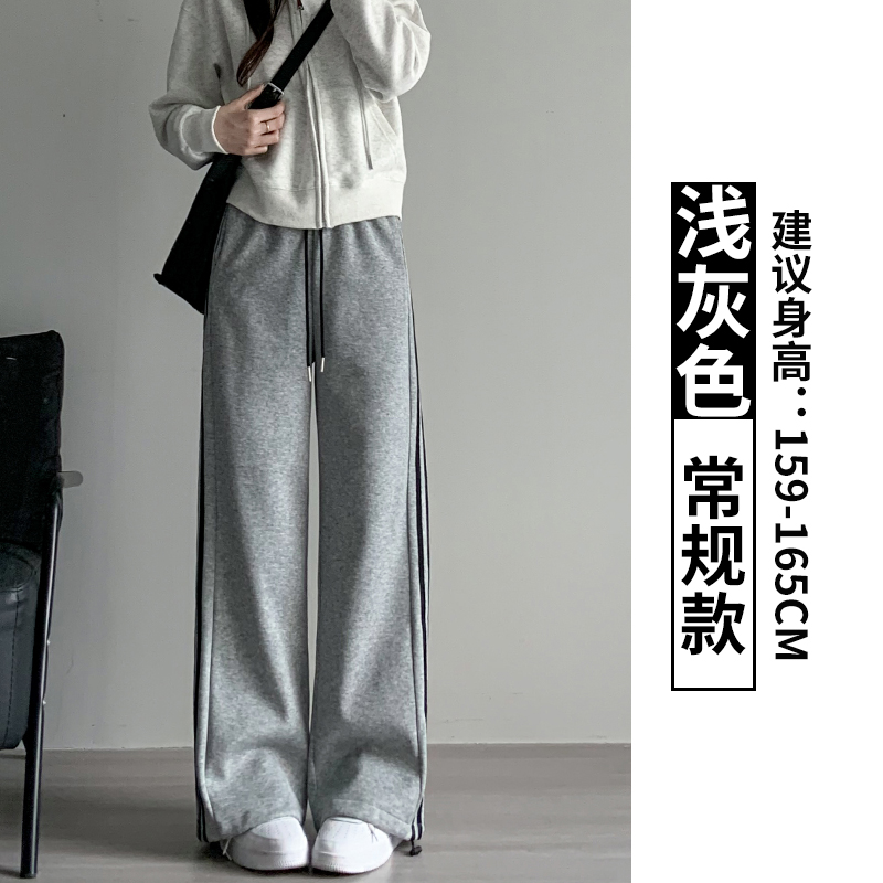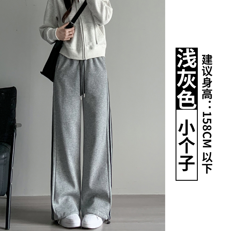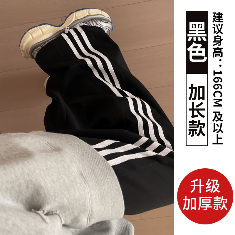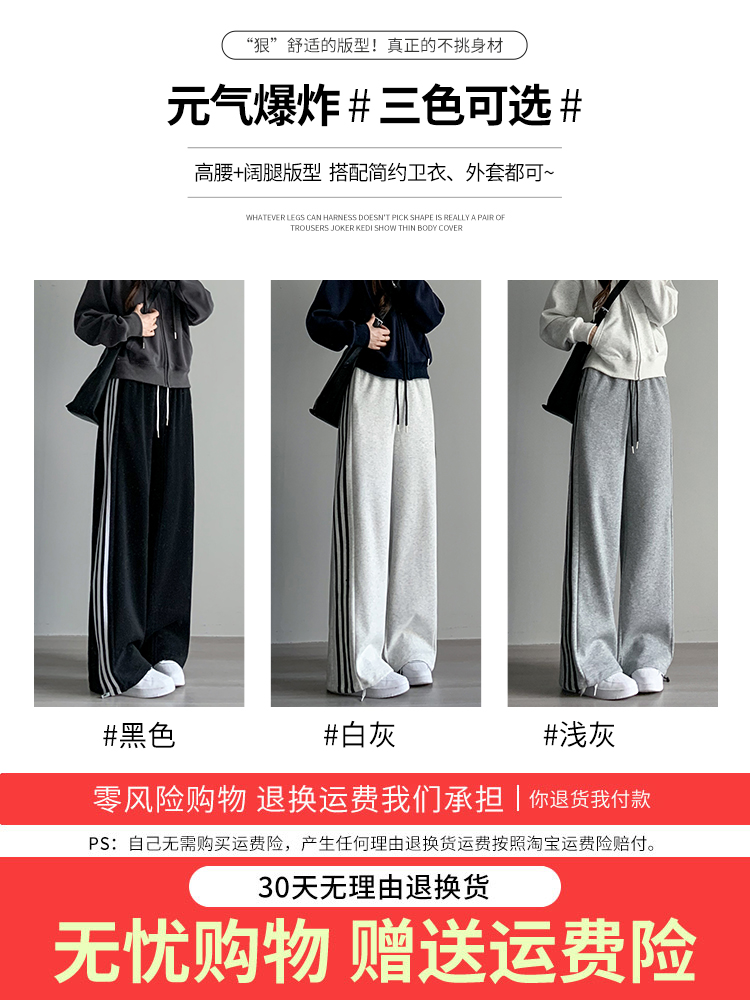 黑色条纹运动裤女秋季2025新款高腰阔腿裤小个子休闲宽松直筒卫裤