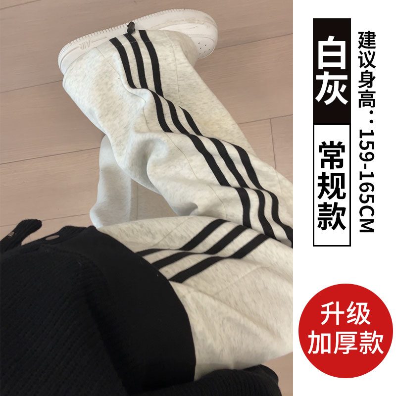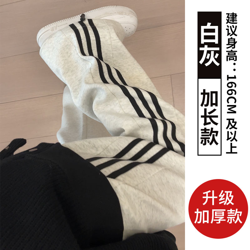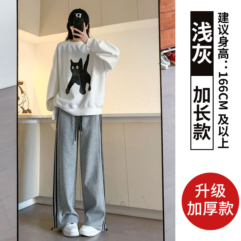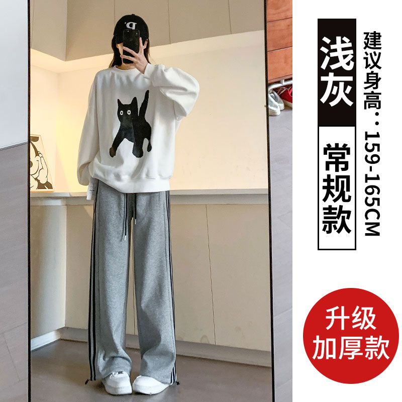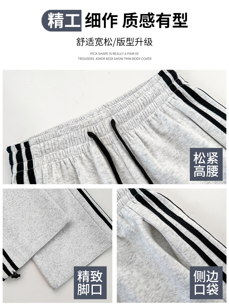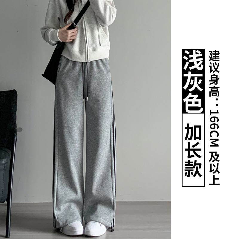 黑色条纹运动裤女秋季2025新款高腰阔腿裤小个子休闲宽松直筒卫裤