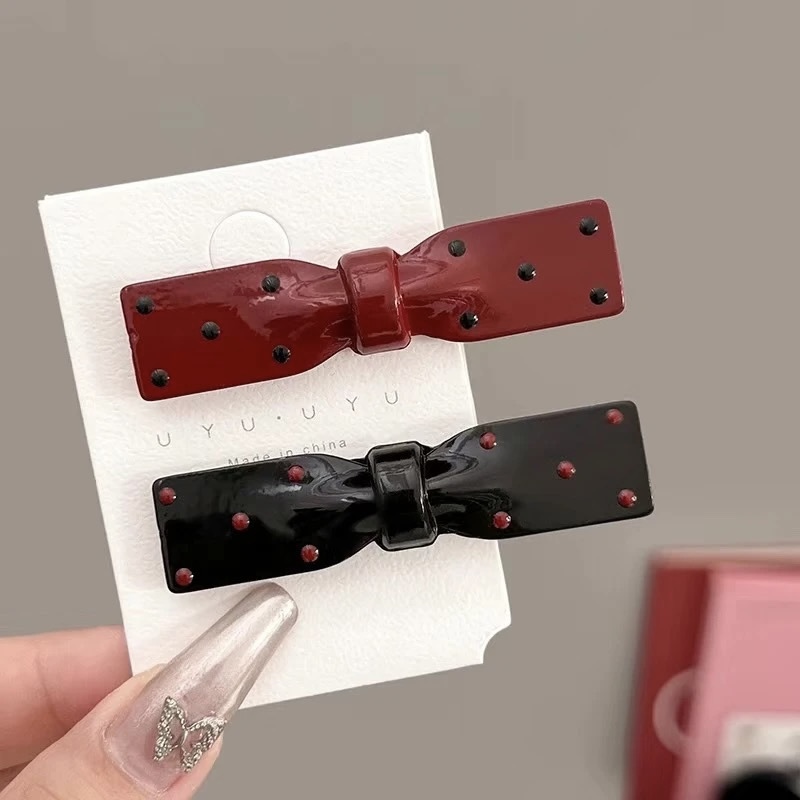 韩版波点蝴蝶结发夹女侧边夹子发卡鸭嘴夹发饰百搭不伤发儿童头饰