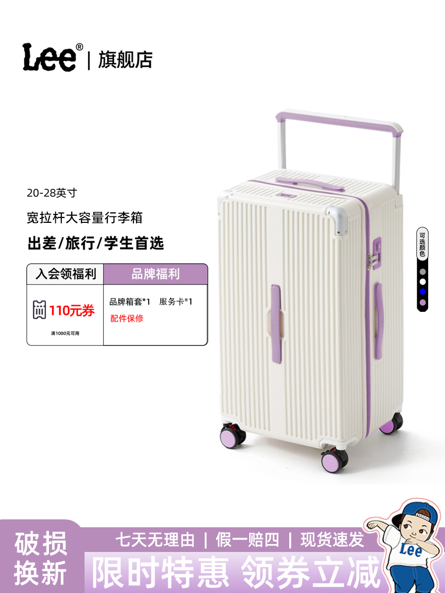 Lee大容量行李箱宽拉杆加厚旅行箱可登机2025新密码托运箱28寸紫