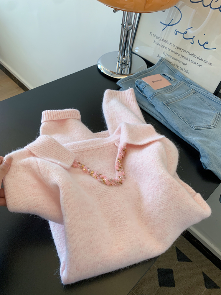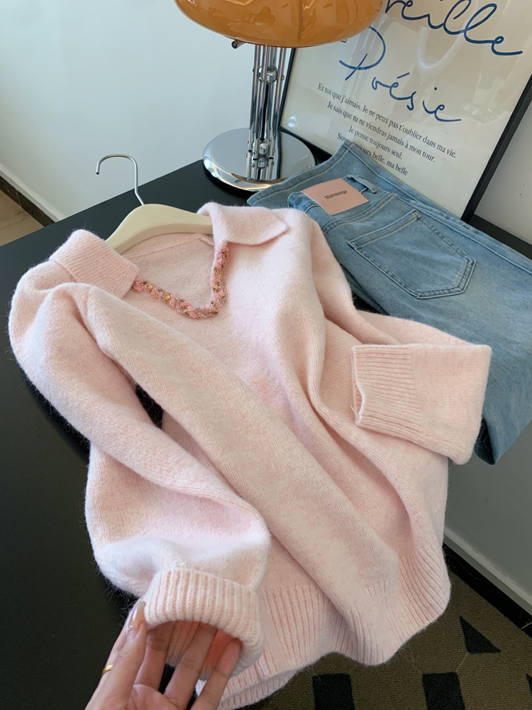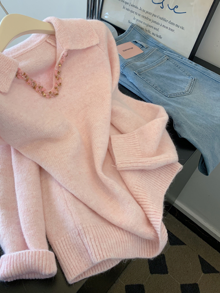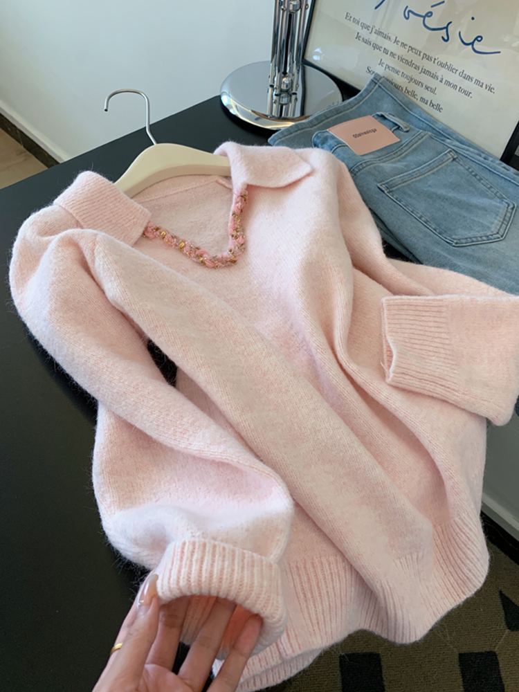 粉色加厚针织衫毛衣女秋冬高级感可外穿内搭小个子宽松慵懒风上衣